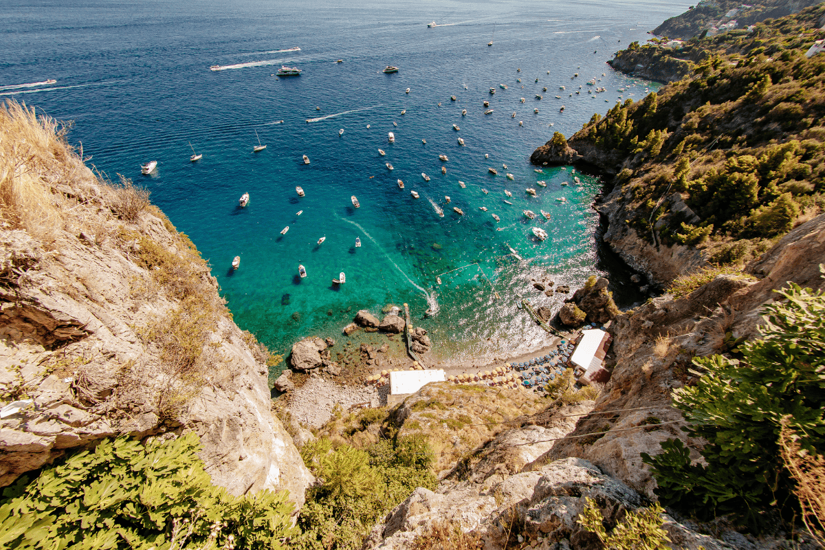 This protected nature reserve is only accessible by foot or boat, meaning no crowds, no beach clubs—just pure nature. After a 45-minute scenic hike, you’ll arrive at one of the most untouched beaches of Amalfi Coast, with turquoise waters and breathtaking views of Capri.